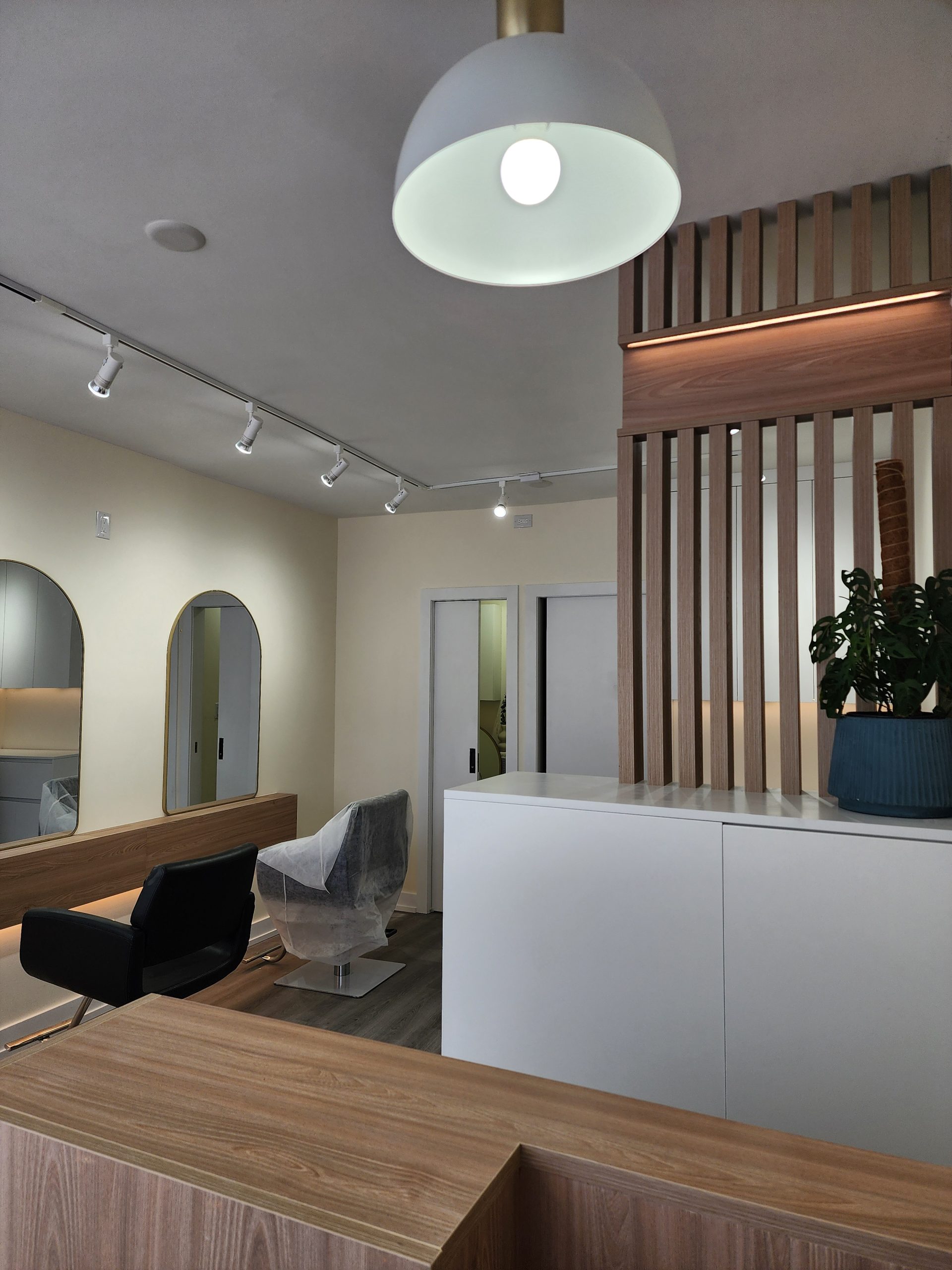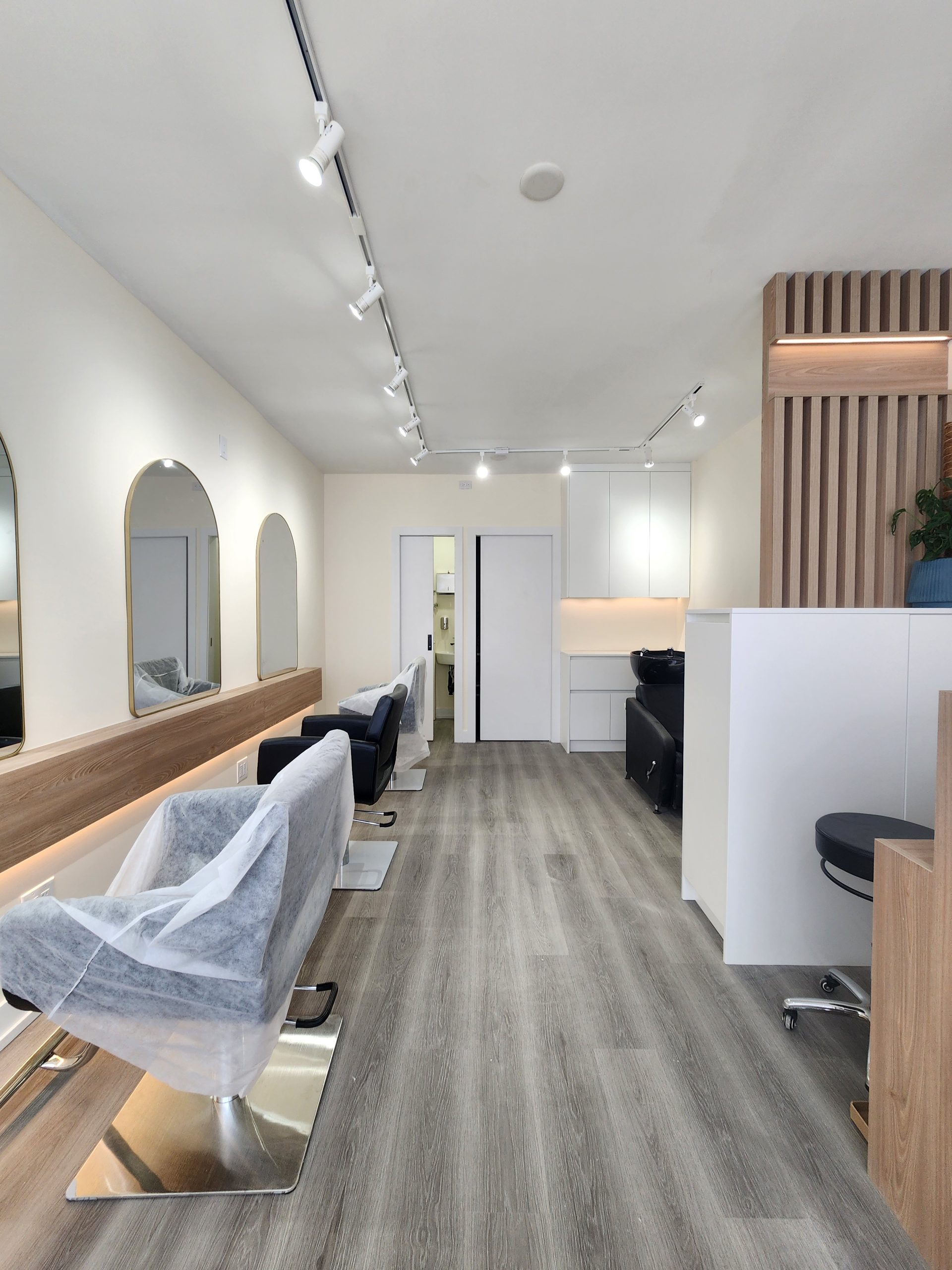From structural patching to precise millwork installation, plumbing upgrades for the wash station, and final finishes, this project delivers a polished salon environment that feels elegant, minimal, and professionally crafted — ready for business from day one.